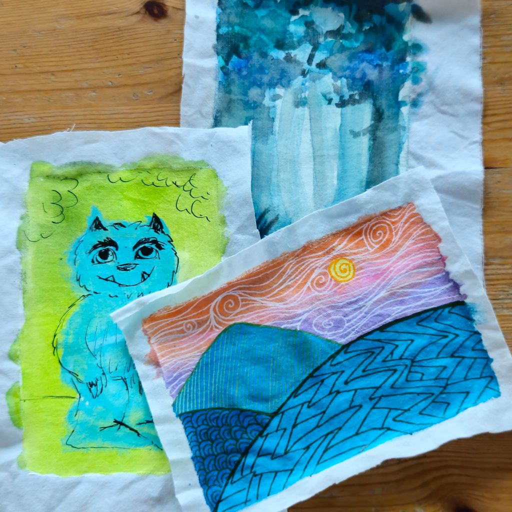 Ik heb wat van deze oefencanvasjes uitgeprobeerd. Werkte prima: acrylinkt, acrylverf, aquarel, inkt.
